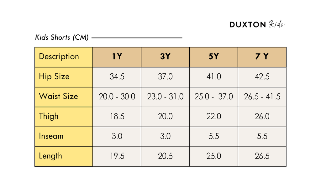 *Sizes corresponds to the age group; e.g. 1 Y = 1 year old.