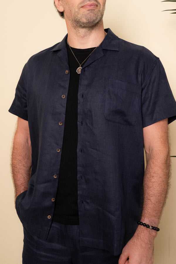 Linen Relaxed Fit Camp Collar Shirt